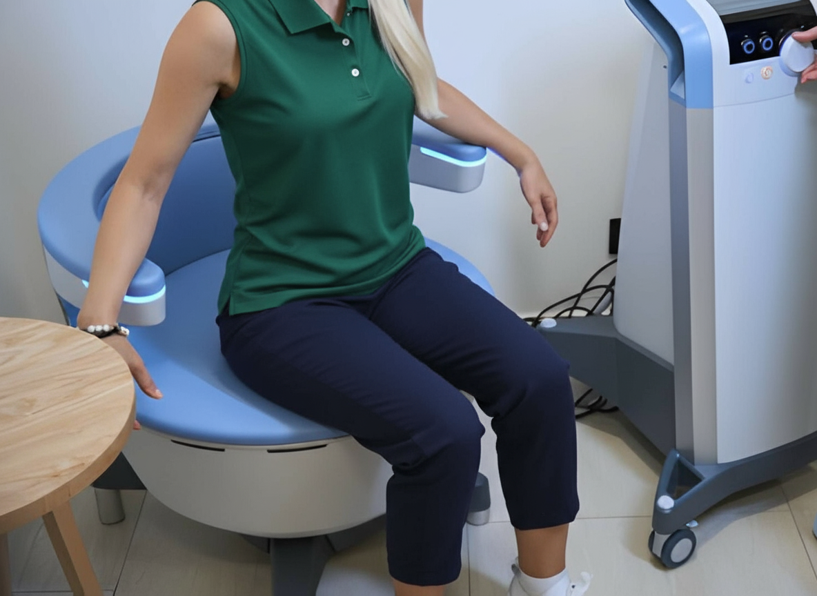 BOOK NOWYou’ll sit comfortably, fully clothed, while the chair delivers deep pelvic contractions and mild tingling sensations. It’s not painful—most describe it as unusual at first but quickly comfortable and even relaxing. You can read, scroll, or simply rest during the session.